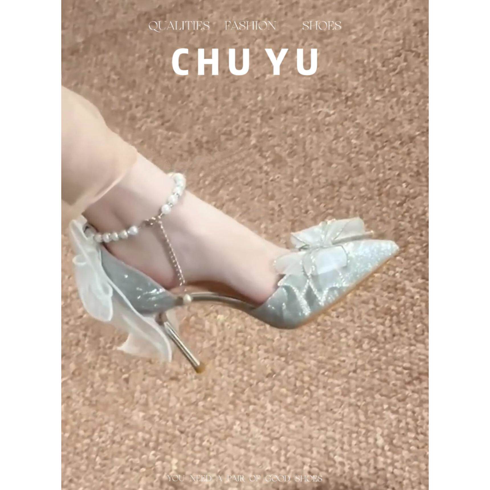 法式高跟鞋女2025新款性感旗袍鞋礼服鞋伴娘鞋细跟白色婚鞋新娘鞋