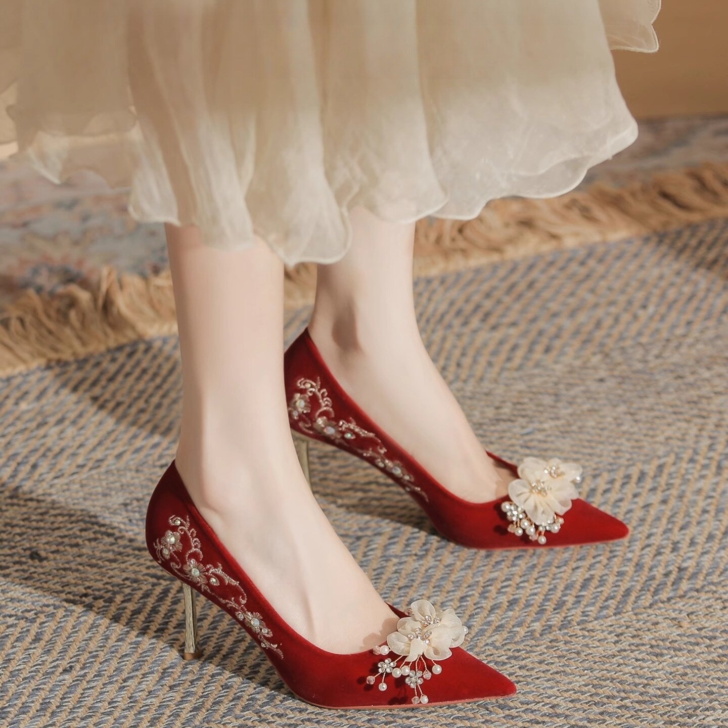 小众婚鞋女细跟2025新款红色刺绣高跟鞋不累脚婚纱两穿秀禾新娘鞋