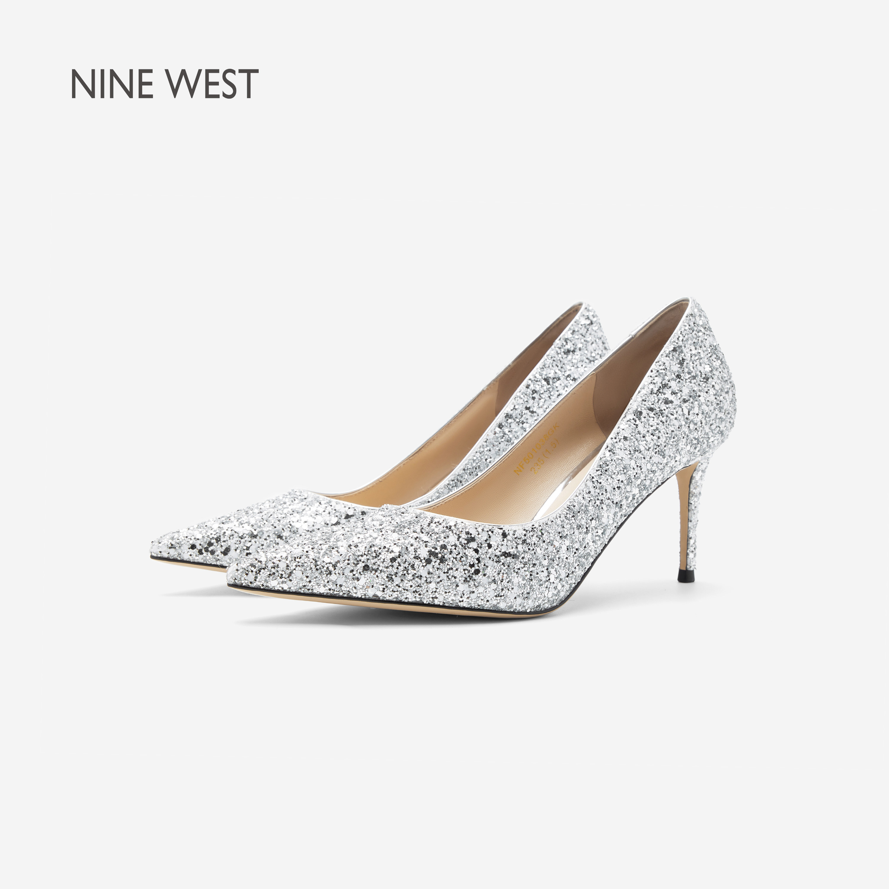 Nine West/玖熙浅口高跟鞋闪钻婚鞋女细跟尖头一脚蹬女士浅口单鞋