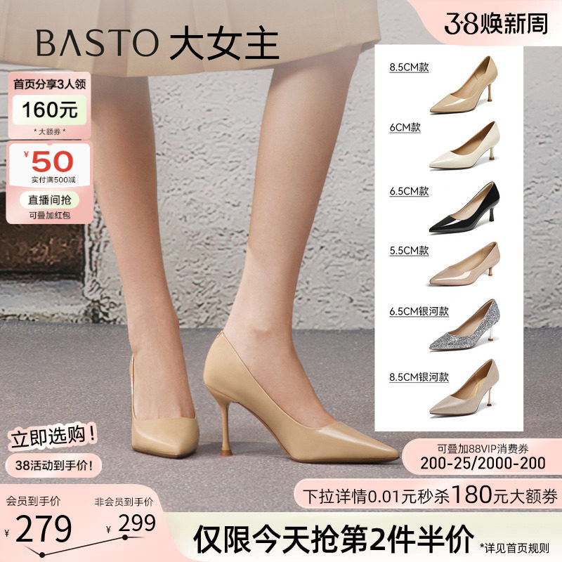 【大女主】百思图26春新款裸色高跟鞋细跟不累脚尖头女单鞋婚鞋