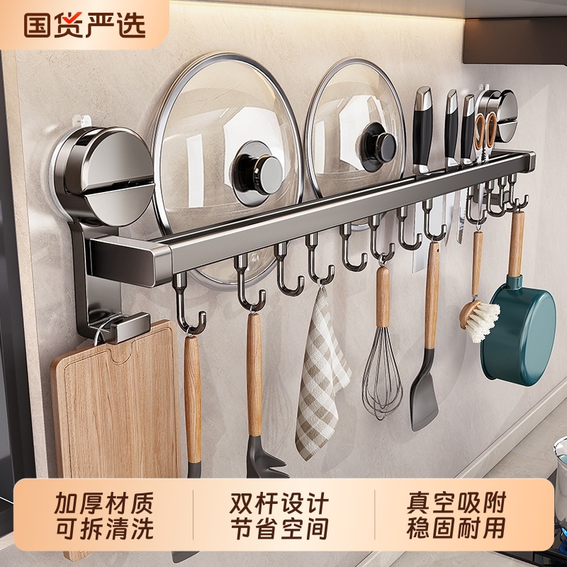 吸盘厨房多功能置物架挂钩免打孔壁挂式挂杆铲子勺子刀架收纳挂架