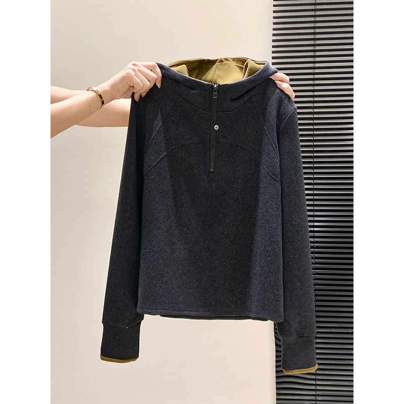 - 黑色连帽卫衣女加绒宽松bf 韩版