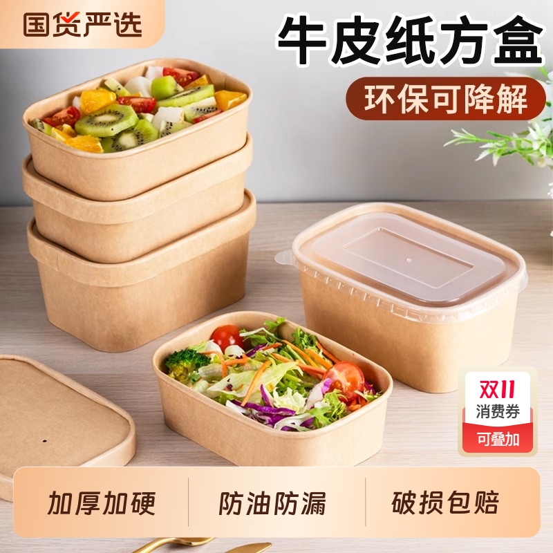 一次性餐盒牛皮纸方形打包盒水果快餐饭盒轻食野餐便当纸盒沙拉盒