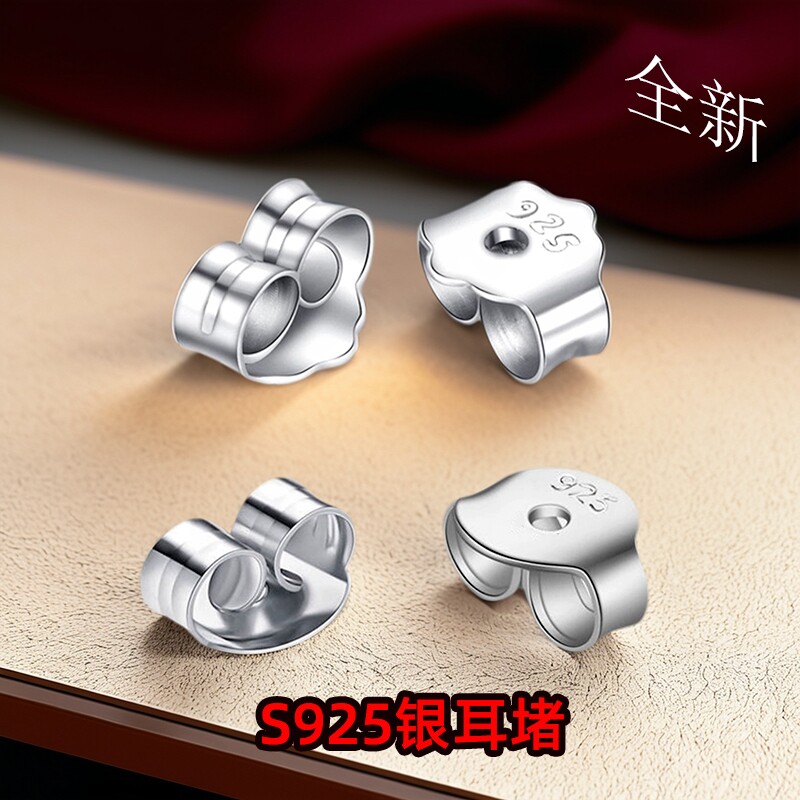 银匠S925纯银耳堵蝴蝶扣防掉超紧耳塞耳钉耳扣耳帽耳塞耳钉配件
