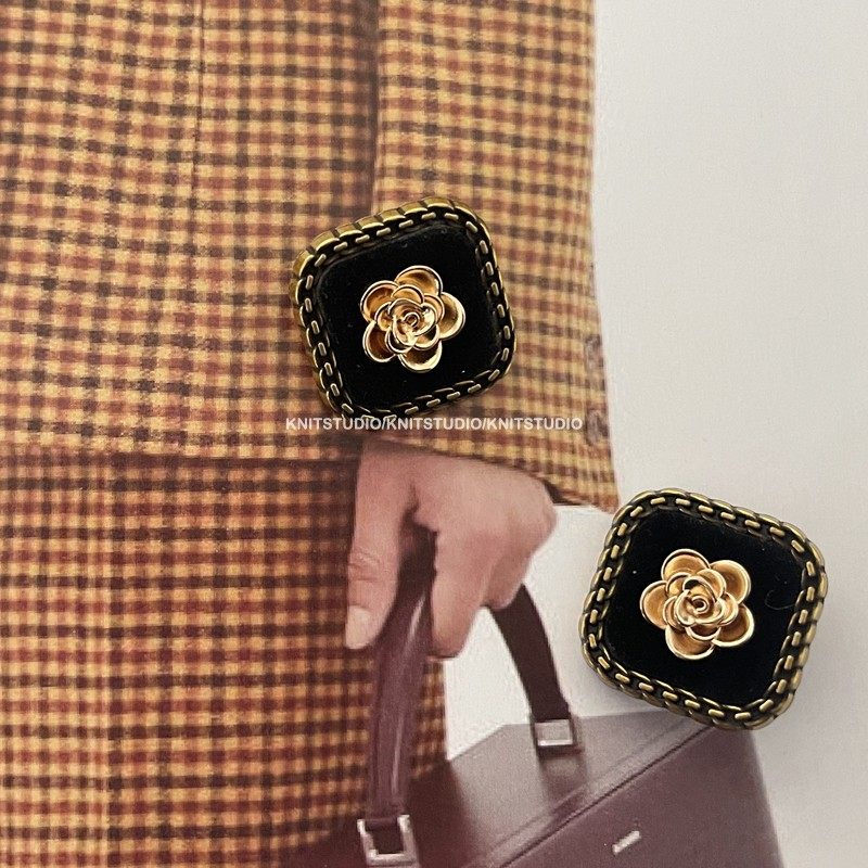 KNITSTUDIO小香复古风金属纽扣方形植绒玫瑰花女大衣外套装饰扣子