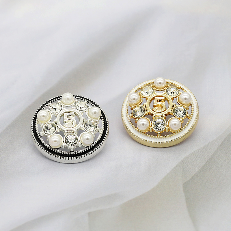 高档金属复古小香风镂空5字带钻珍珠纽扣女大衣外套装饰钮扣扣子