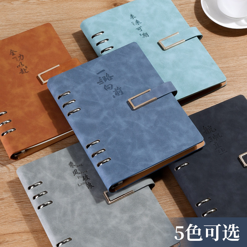 a5笔记本子活页可拆卸扣环个性商务工作记事本定做简约大学生创意文艺精致手账本办公复古皮面日记本定制logo