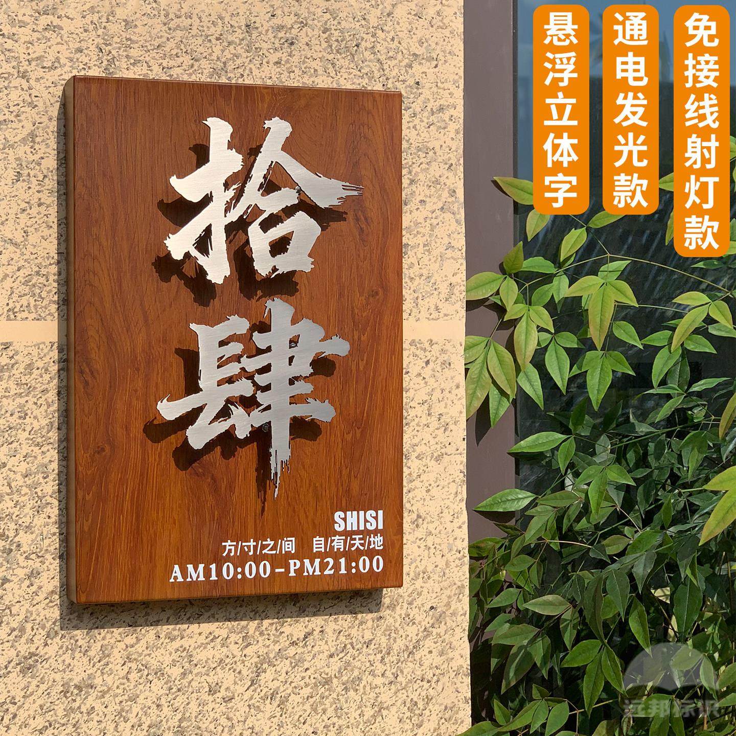 灯箱广告牌创意门牌木纹民宿酒店门头招牌发光字定做公司招牌定制