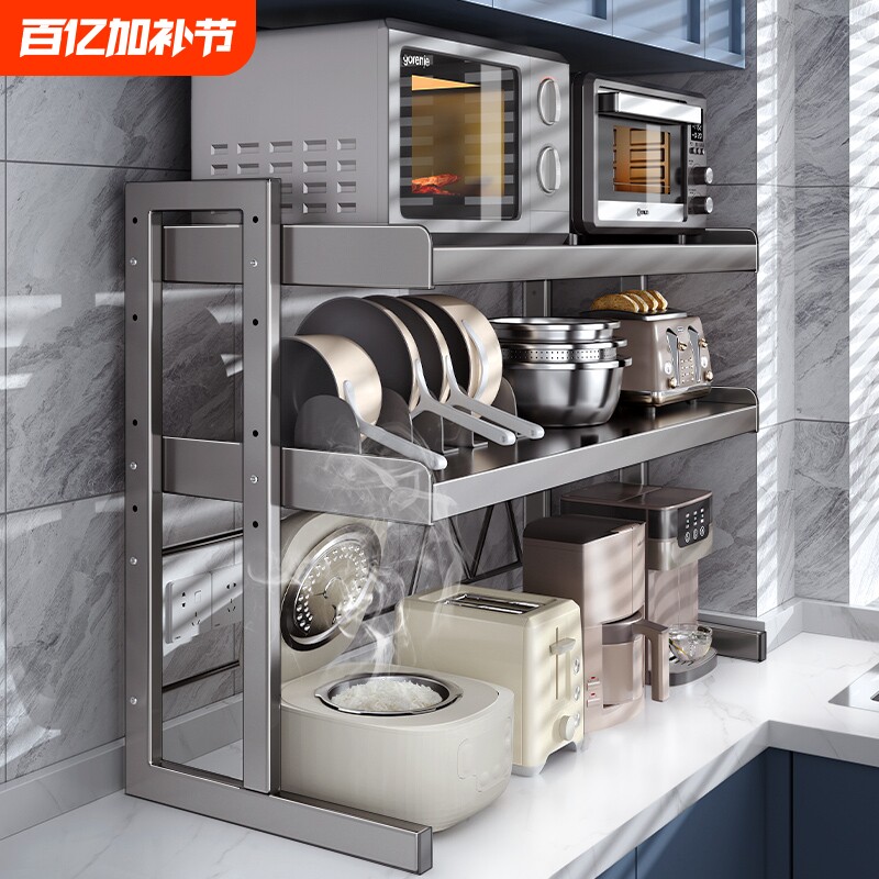 不锈钢厨房置物架多层微波炉架子收纳架储物锅架三层烤箱货架菜架
