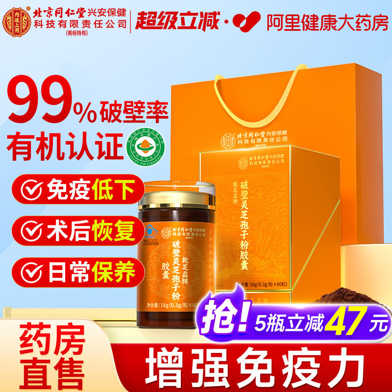 同仁堂牌破壁灵芝孢子粉胶囊增强免疫力北京同仁堂官方旗舰店60粒
