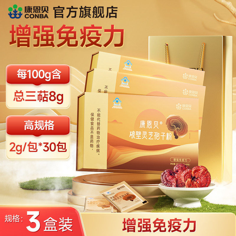 年货预售】3盒装康恩贝破壁灵芝孢子粉中老年人增强免疫力送礼盒