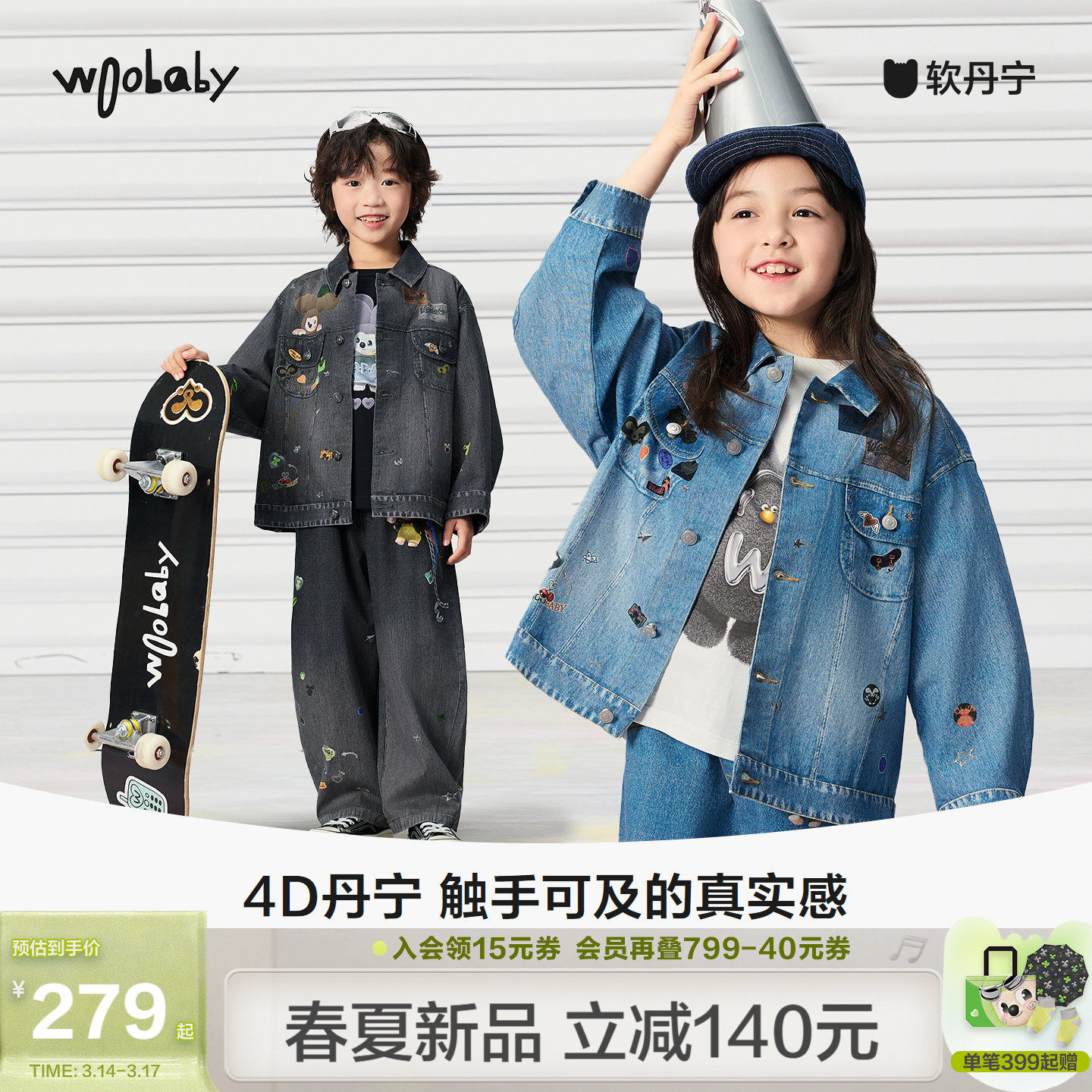 [4D丹宁]woobaby儿童牛仔套装男女童26年春新品亲子复古外套裤子