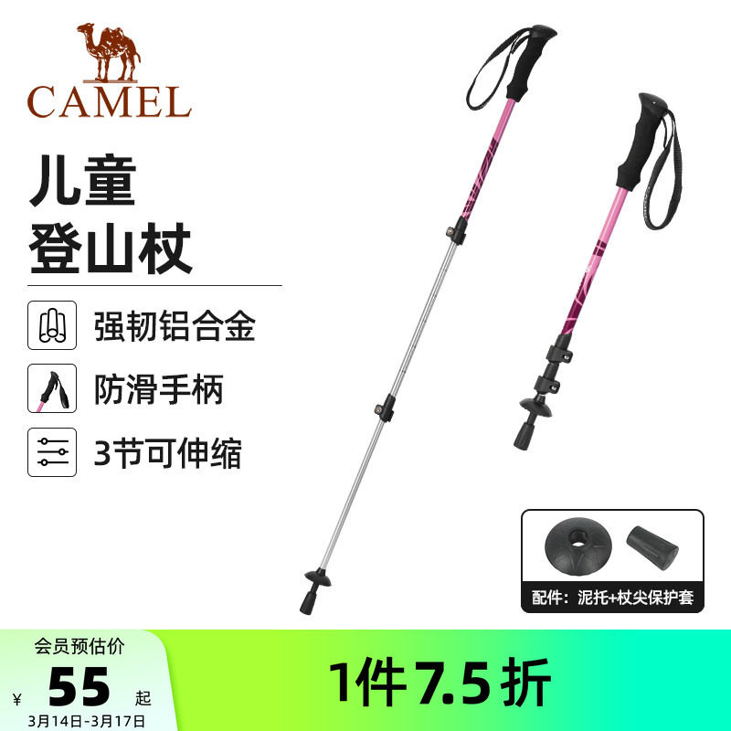 【亲子装】骆驼登山杖儿童男女款徒步手杖铝合金亲子伸缩爬山拐杖