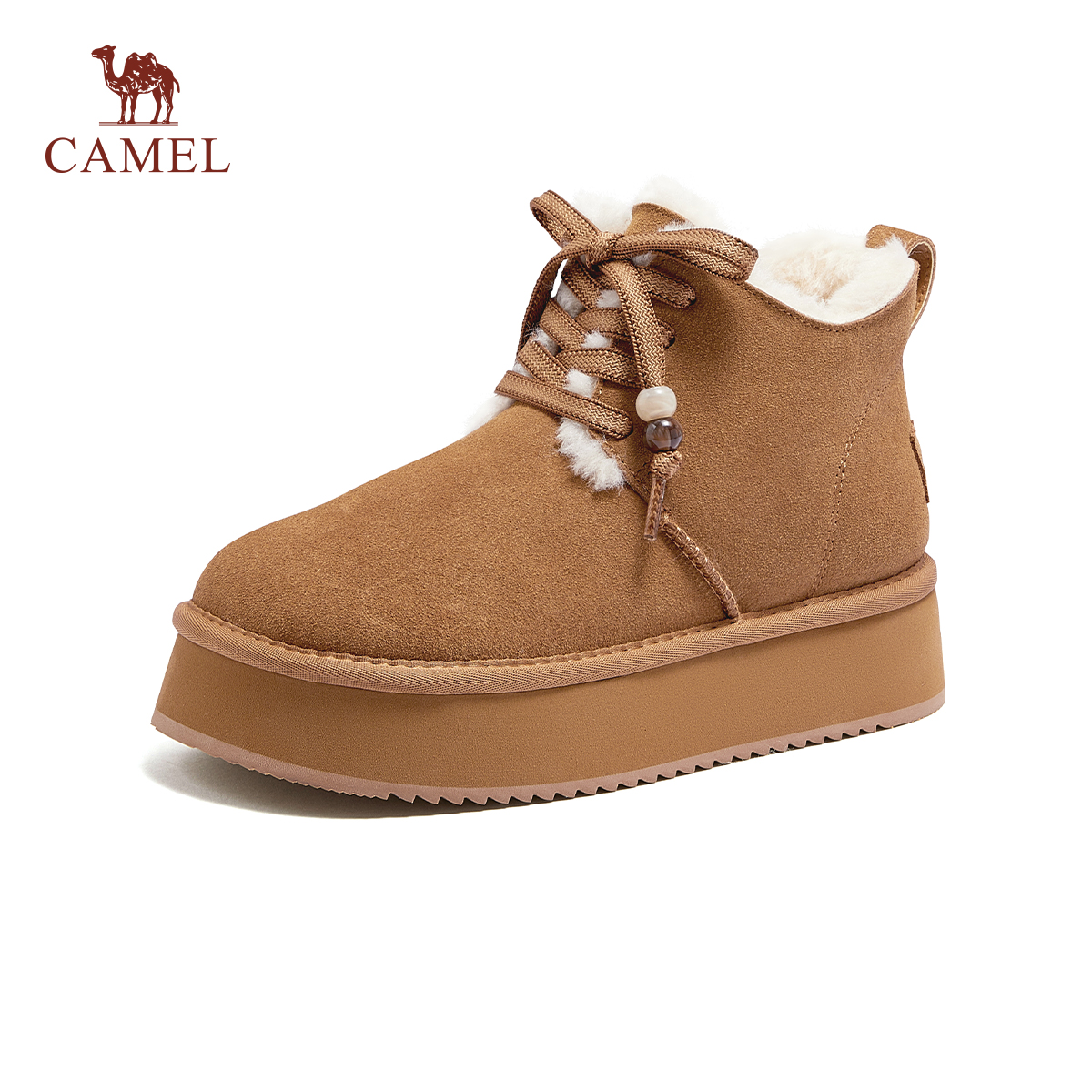 骆驼女鞋2025冬季新款加绒老爹鞋女厚底棉鞋女高帮鞋保暖雪地靴子