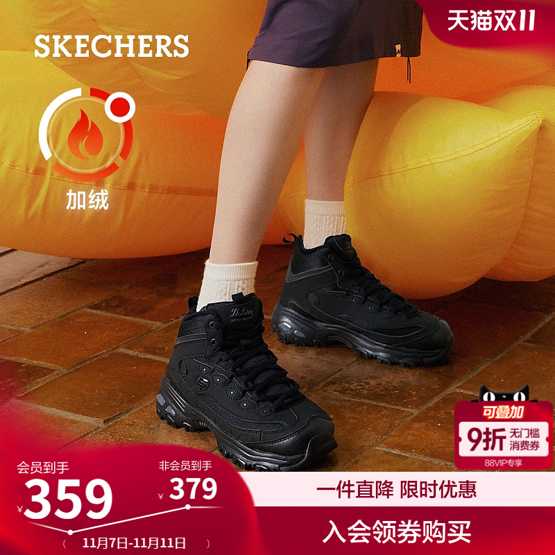 斯凯奇冬季女高帮鞋熊猫鞋加绒保暖老爹鞋厚底增高休闲运动鞋棉鞋