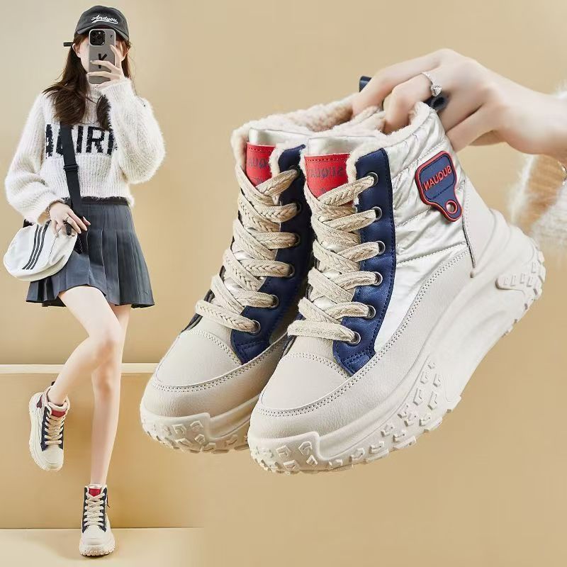 唐福轩女鞋2025新款冬季新款雪地靴女加绒加厚保暖大棉鞋女高帮鞋