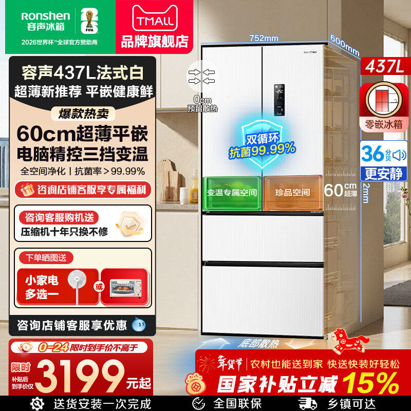 容声冰箱437L升法式多门超薄嵌入式一级能效家用无霜变频官方正品