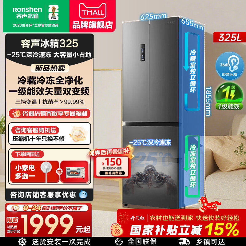容声冰箱325L升法式多开门四门一级能效家用变频节能无霜官方正品