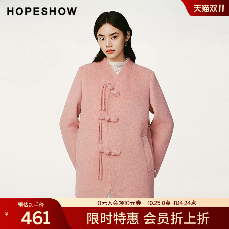【会员专享】红袖2024冬新款女装单排扣立领圈圈绒一手长外套