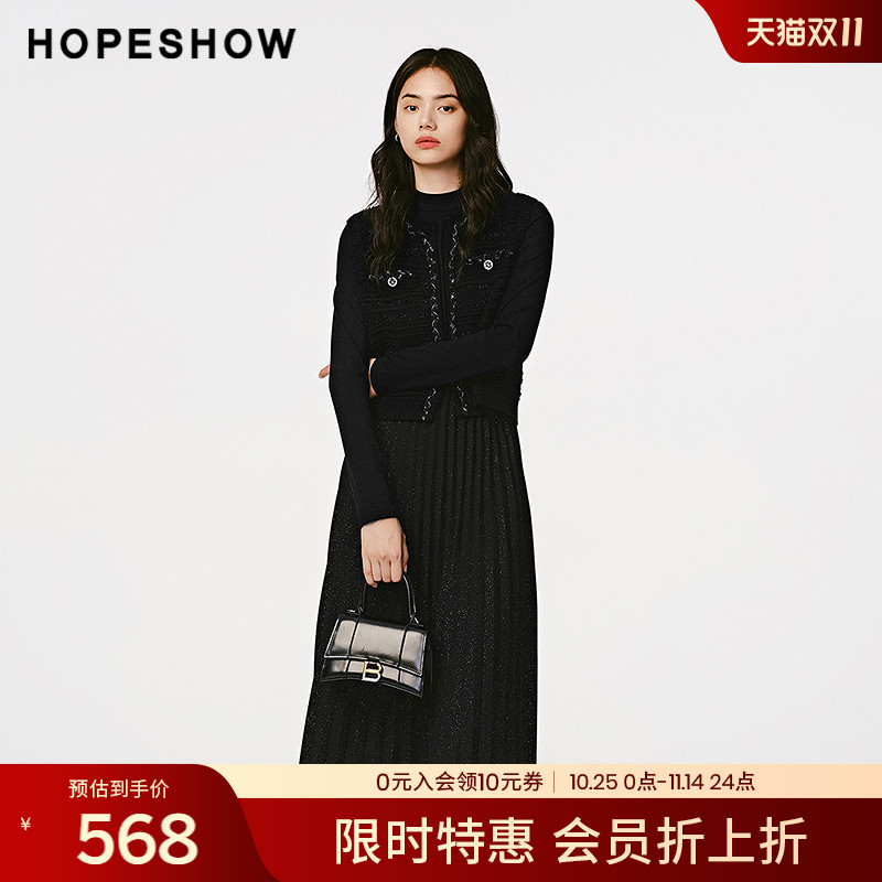 【会员专享】红袖高级香风小黑裙两件套2024冬新款女装连衣裙