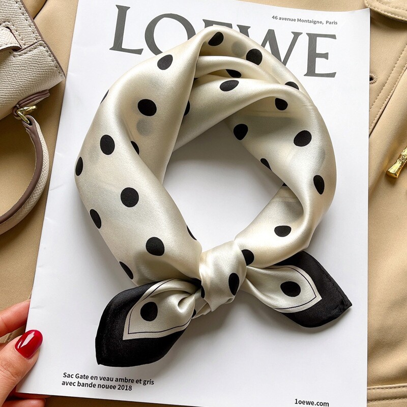 高级感波点丝巾100%真丝桑蚕丝小方巾女新款洋气时尚围巾领巾高档