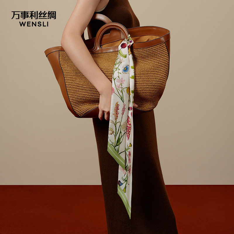 万事利新品100%桑蚕丝真丝丝巾女小斜巾飘带发带腰带女长条巾丝带