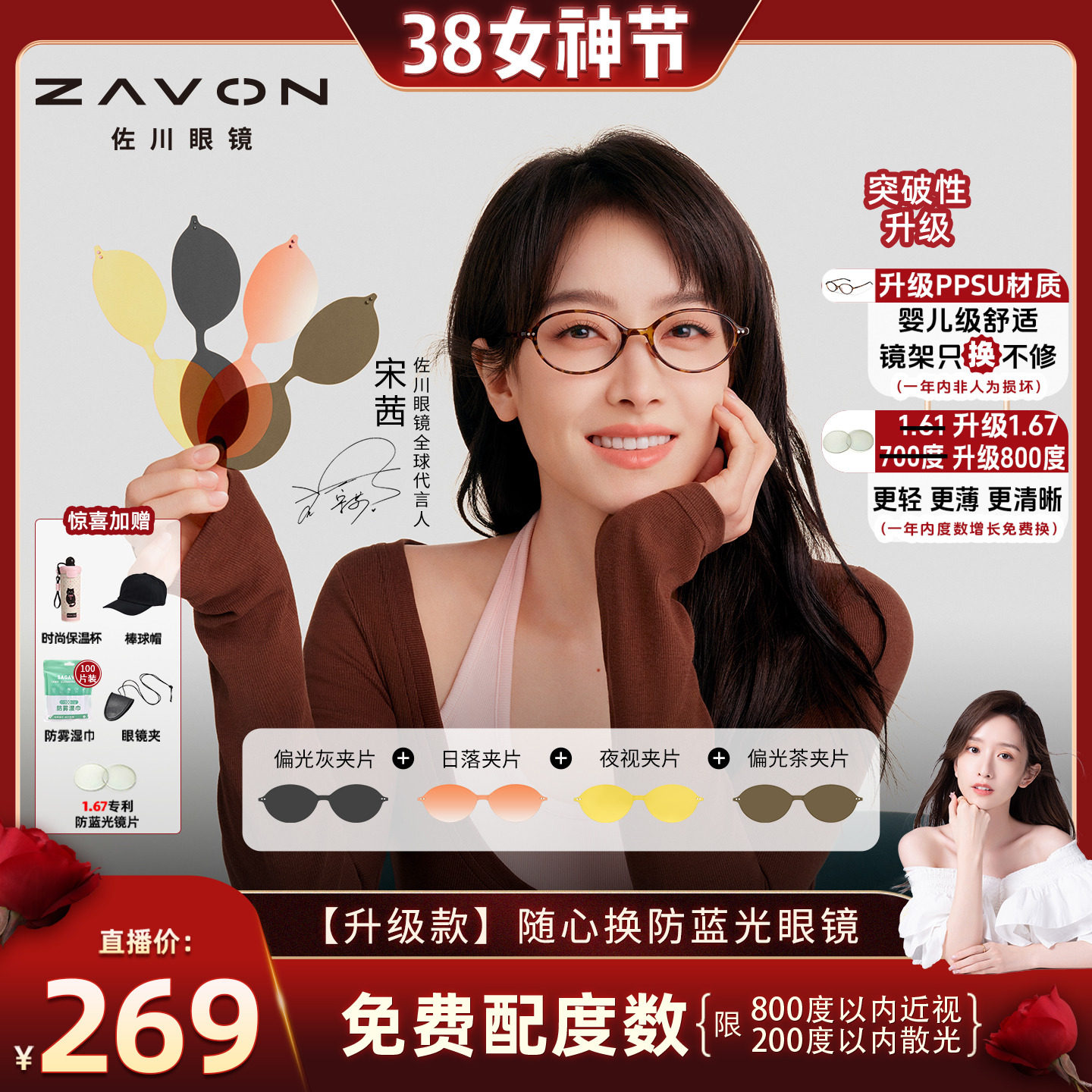 佐川26新品简约椭圆框防蓝光眼镜女时尚百搭可配近视度数眼镜架男
