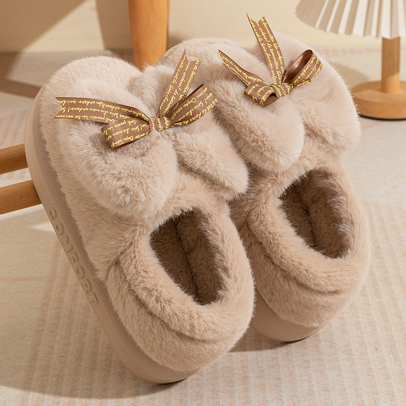 厚底保暖棉拖鞋女冬季2024新款加绒棉鞋居家外穿可爱蝴蝶结雪地靴