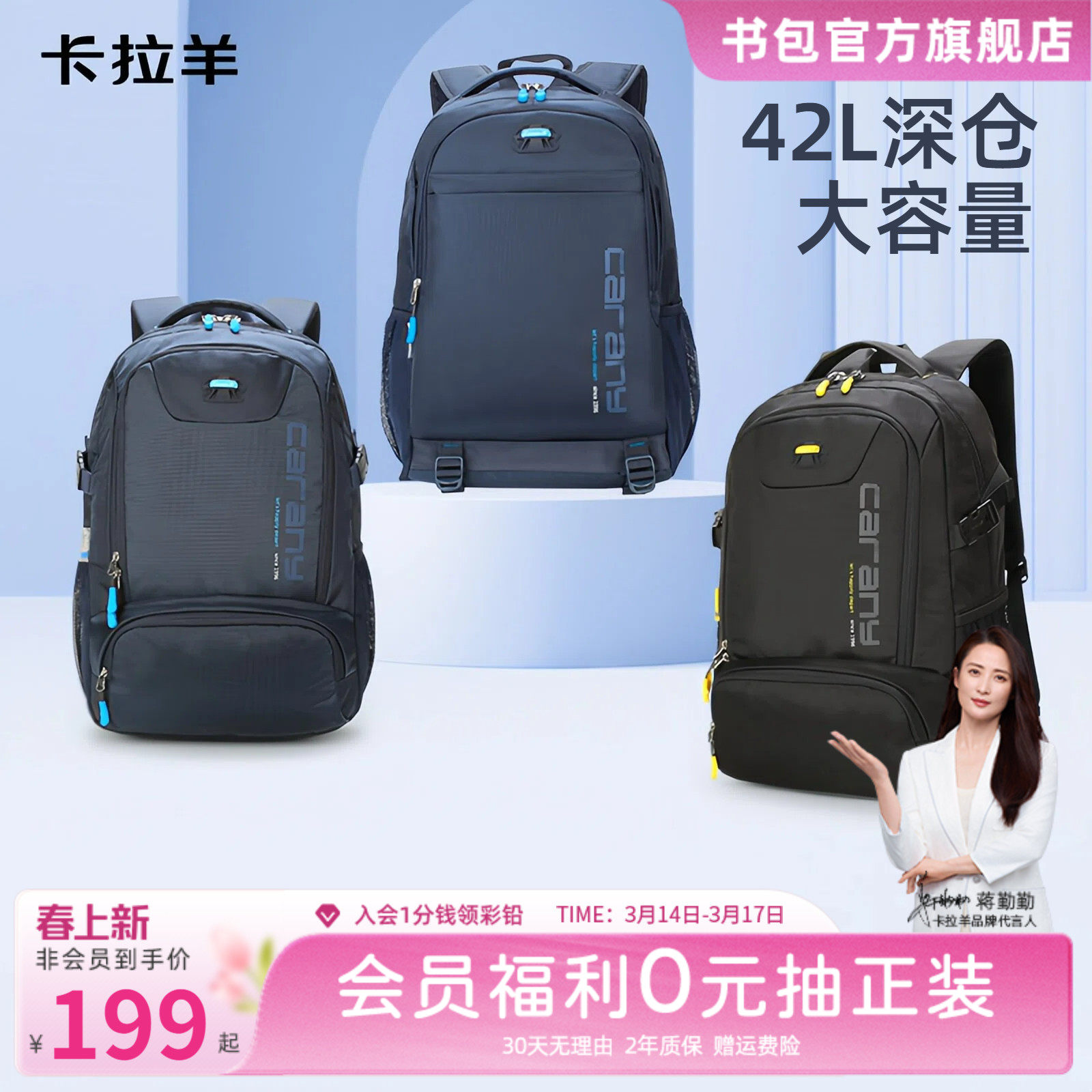 卡拉羊5-9年级初中生书包女大容量成人双肩包电脑包高中生登山男