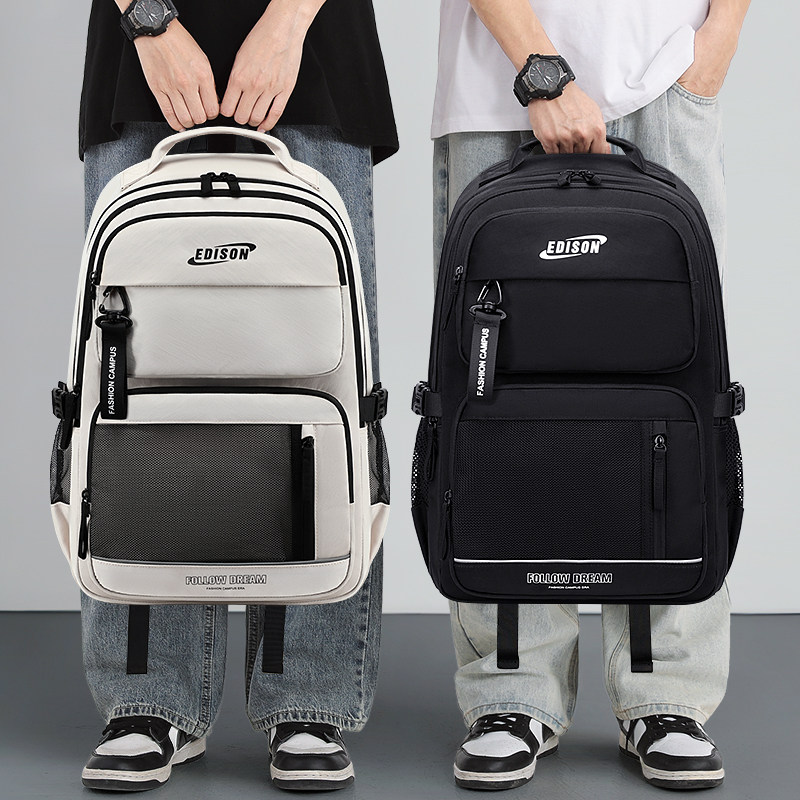 爱迪生减负护脊大容量中学生初中生书包女高中女生撞色双肩背包男