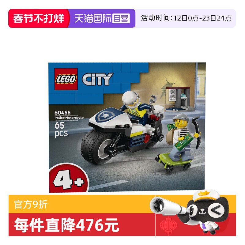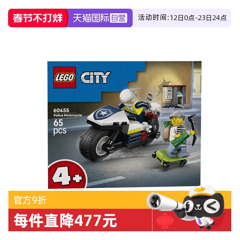 【自营】乐高城市组60455警用摩托车大追击男生拼搭积木玩具礼物