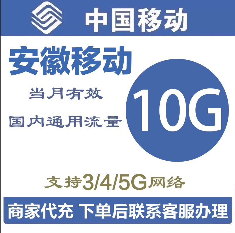 安徽移动流量充值10G中国移动流量加油包全国通用流量当月有效