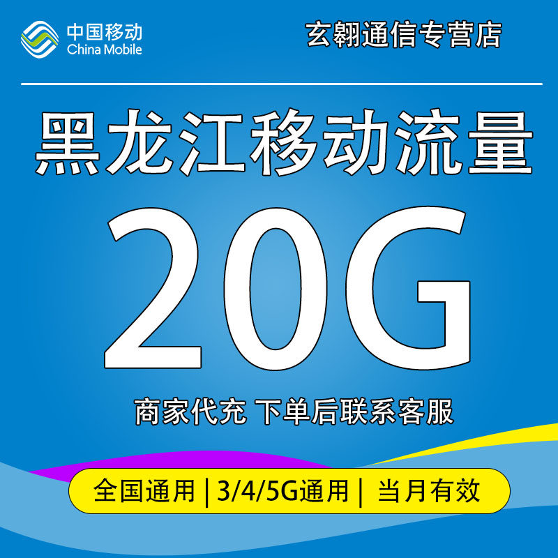 黑龙江移动流量充值20G中国移动流量加油包全国通用流量当月有效