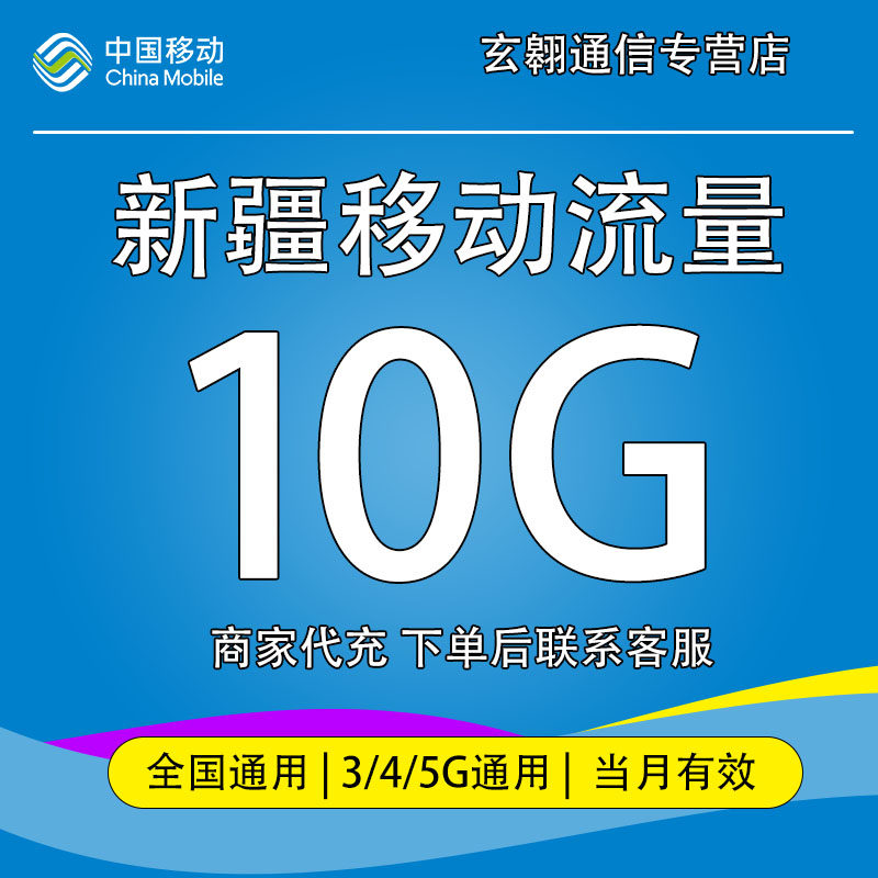 新疆移动流量充值10G中国移动流量加油包全国通用流量当月有效