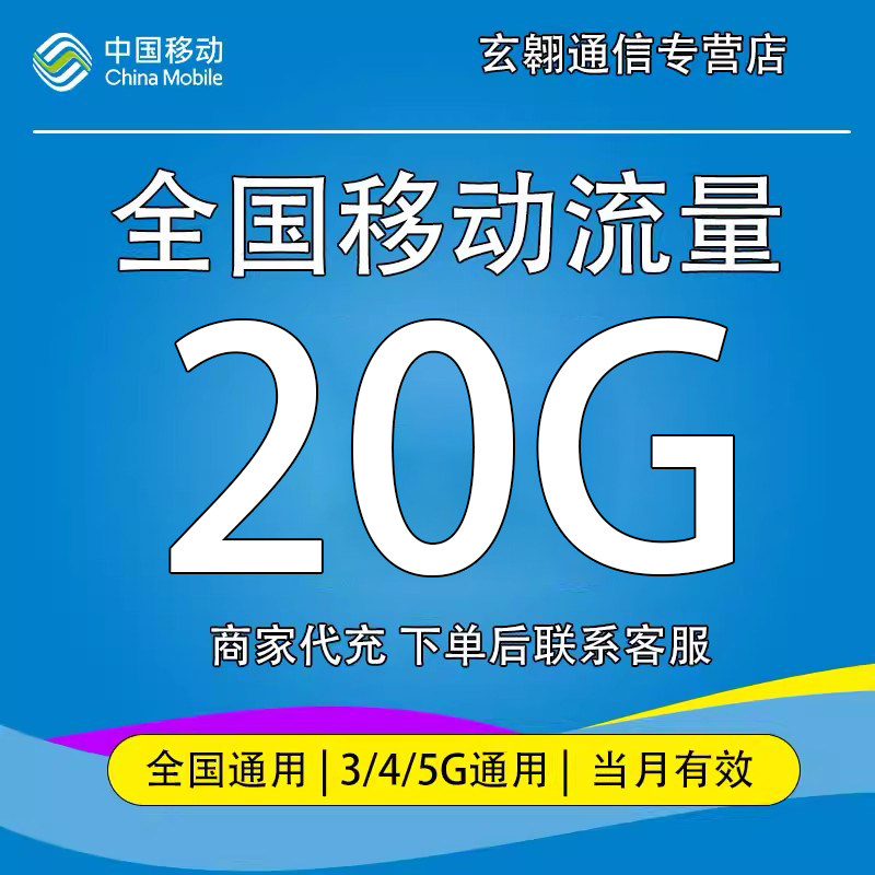 全国移动流量充值20G中国移动流量加油包全国通用流量当月有效qg