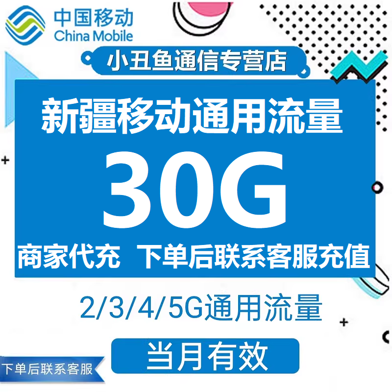新疆移动手机流量充值30G全国通用当月有效中国移动流量加油包