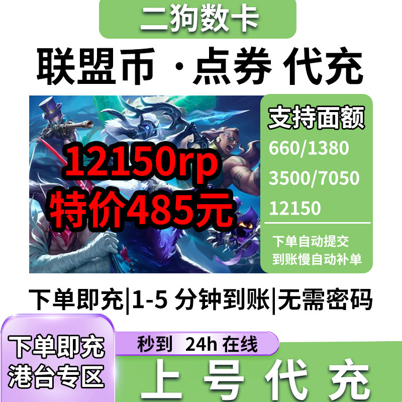 LOL英雄联盟国际服端游台服台区港服充值卡密自充点券储值联盟币