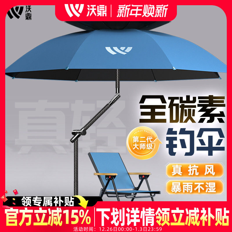 沃鼎第二代碳素钓伞2025新款钓鱼伞户外超轻械臂拐杖暴雨防晒钓伞