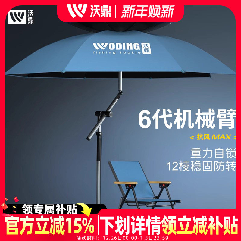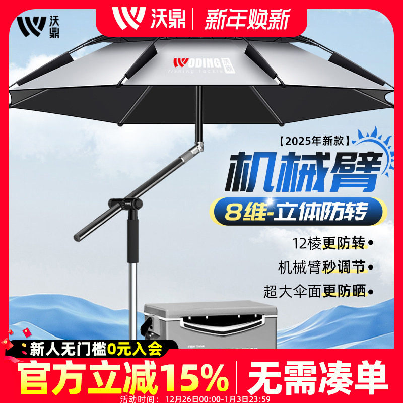 沃鼎六代钓鱼伞户外专用钓鱼加厚遮阳伞2025新款防暴雨机械臂钓伞