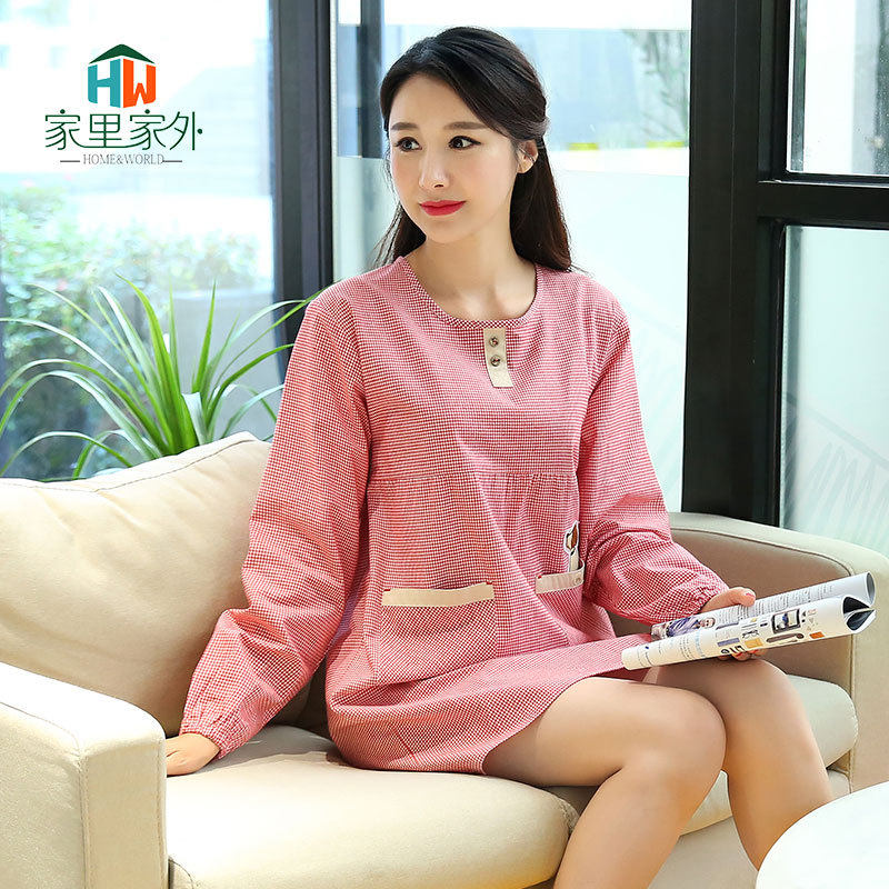家里家外韩版棉质加长防水围裙家居厨房长袖可爱成人罩衣女款包邮