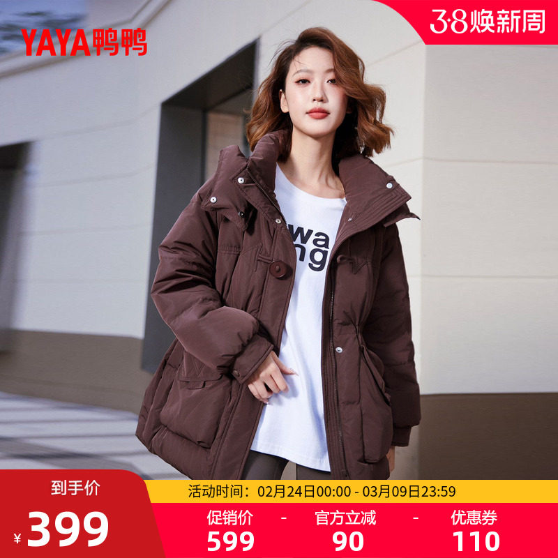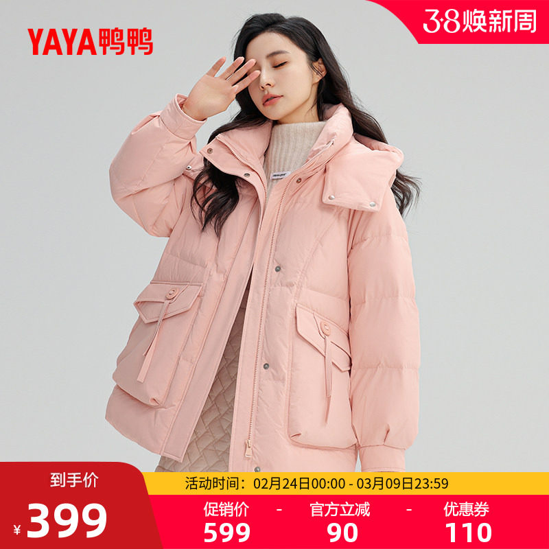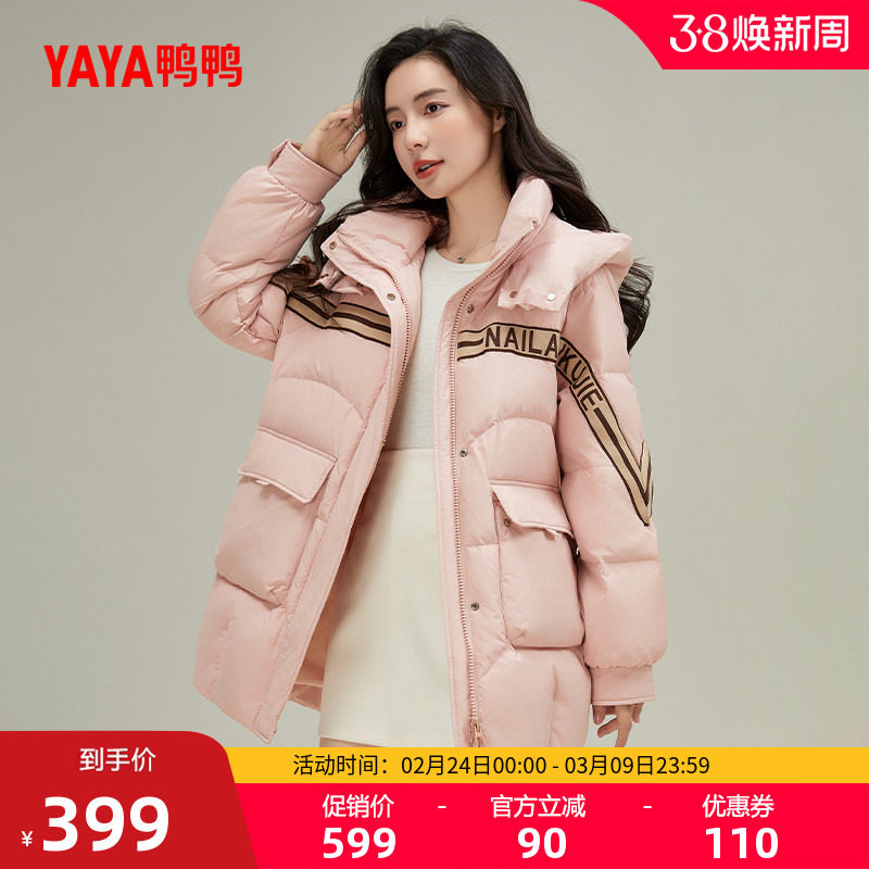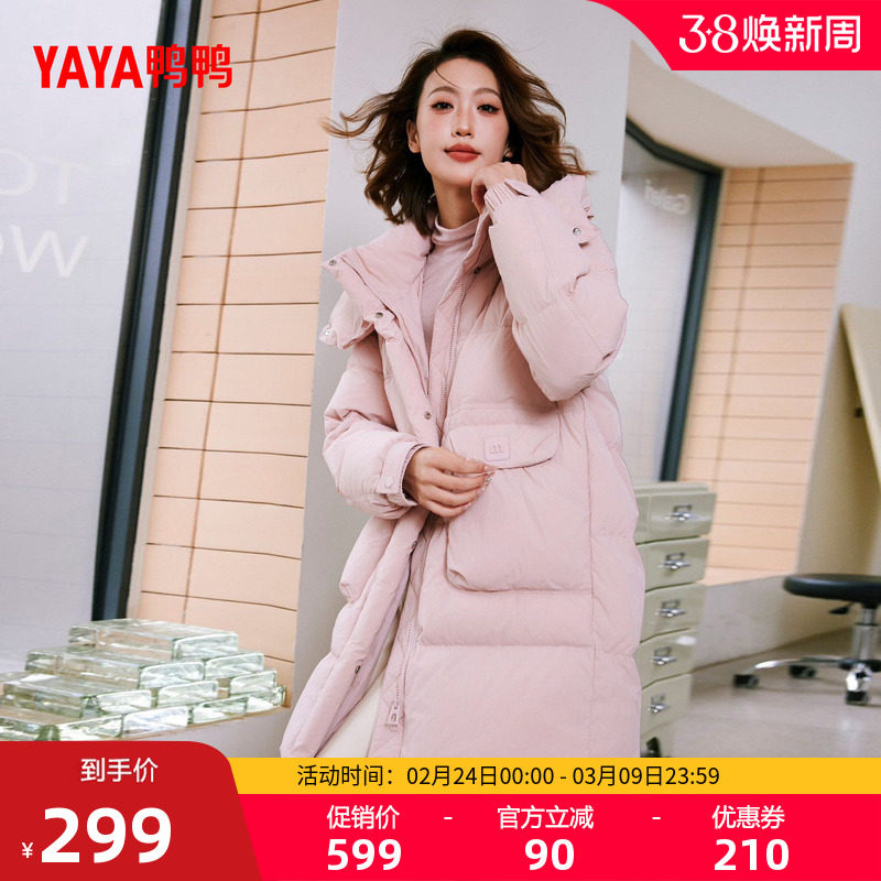 YAYA鸭鸭2025冬加厚时尚百搭休闲连帽潮流宽松女士中长款羽绒服