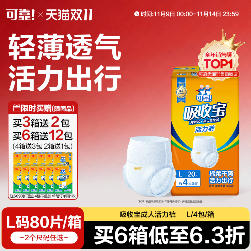 可靠吸收宝活力裤轻中度失禁成人拉拉裤老人尿不湿内裤纸尿裤轻薄