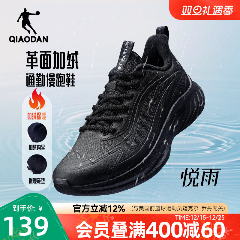 乔丹悦雨冬季加绒运动鞋皮面保暖防水男鞋学生跑鞋减震软底跑步鞋