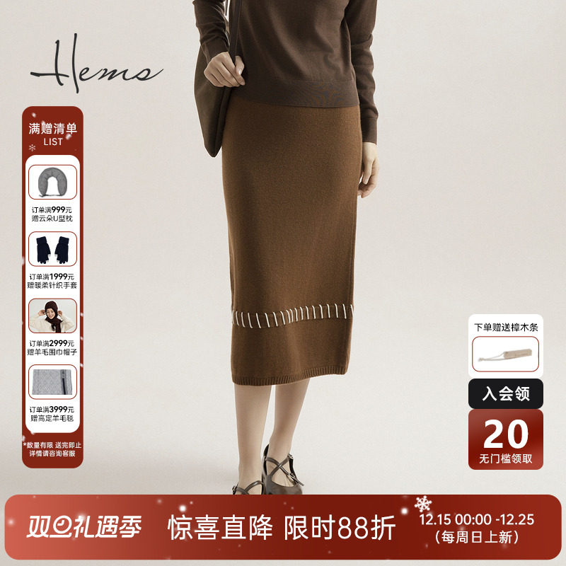 海尔曼斯25春新款羊绒裙中长款显瘦针织半身裙简约通勤210F8B7