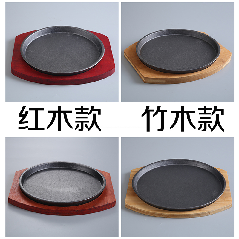 商用铸铁牛排铁板烧盘圆形加厚烧烤烤盘韩M式烤肉锅西餐铸铁牛排