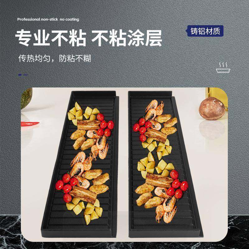 跨境烧烤烤盘不户粘煎盘烤盘外便携长条肉形烤盘板烧烤工具铁烧烤