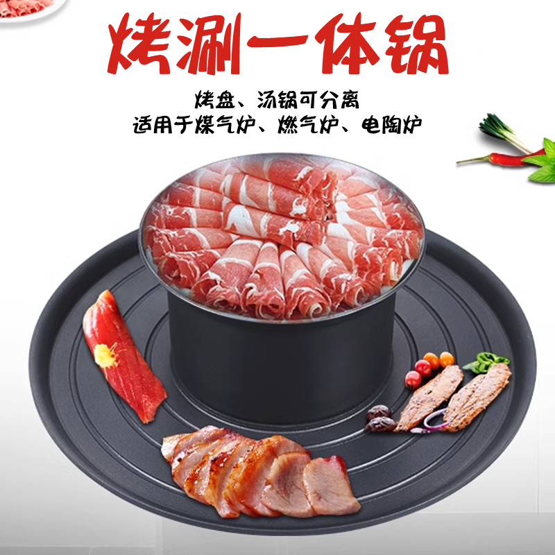 商用铸铝涮烤一体锅韩式烤肉火锅烧烤烤盘贵州活油烙锅煤气烤肉盘