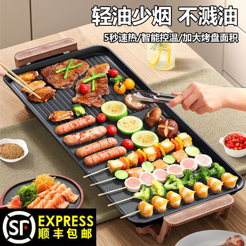 电烤盘家用烤肉盘少烟不粘室内韩式多功能电烧烤炉架子煎肉烤肉锅