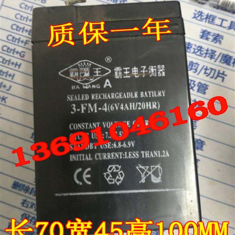 霸王电子衡器蓄电池 3-FM-4 6V4AH/20HR电子称 台秤 天平秤电瓶