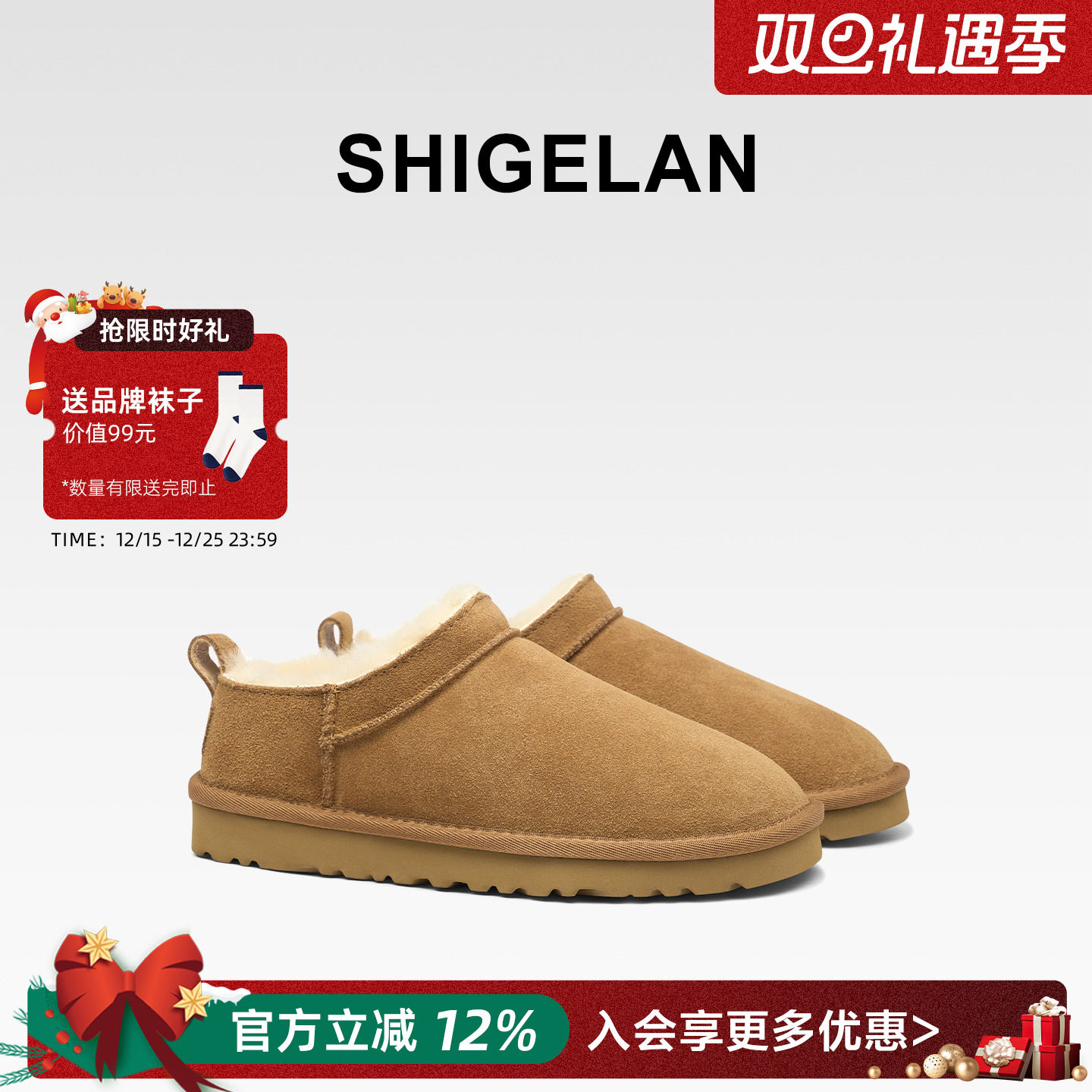 诗歌兰2025冬季新款雪地靴女短筒韩版百搭学生防水皮面一脚蹬棉鞋